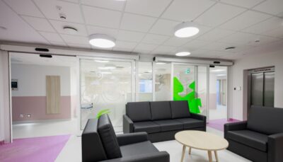 Telpas ir veidotas mierīgos krāsu toņos, pārdomātais plānojums un navigācijas zīmes ļauj viegli atrast visu nepieciešamo – informācijas zonu, ģērbtuves skapīšus, Drosmes telpas procedūru veikšanai, rotaļu un izglītības zonas, kā arī atpūtas zonu vecākiem kopā ar bērniem. Bērnus priecē jaukas uzlīmes ar zaķiem, ar vides dizaina palīdzību turpinot padarīt katra pacienta pieredzi slimnīcā vēl pozitīvāku.