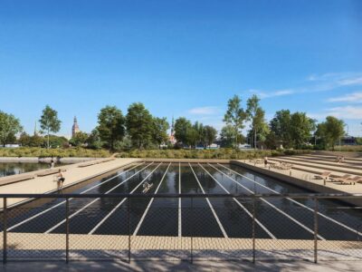 Metu konkursā par AB dambja publiskās ārtelpas attīstību uzvarējis mets ar devīzi ABČ, ko izstrādāja SIA RUUME arhitekti kopā ar apakšuzņēmumiem SIA Topia un SIA AMECO. Komandā strādāja arī Oskars Vāvere, Aivars Bērziņš un Vineta Alekna. Konkursa uzvarētājam tiks piešķirta 8 000 eiro godalga, informē Rīgas domē.