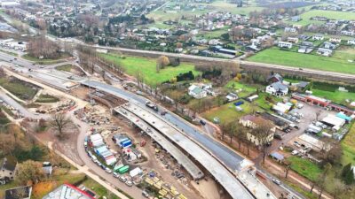 Rīgā turpinās Dienvidu tilta ceturtās kārtas vērienīgie būvdarbi, kurus plānots pabeigt 2027. gadā. Kā informē Rīgas pašvaldībā, darbi uz priekšu virzās atbilstoši grafikam, objekts pakāpeniski iegūst projektētās aprises.