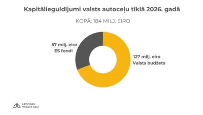 Kopumā valsts ceļu tīklā šogad tiek plānoti kapitālieguldījumi 184 miljonu eiro apjomā, no tiem 57 miljoni plānoti kā ES līdzfinansējums.