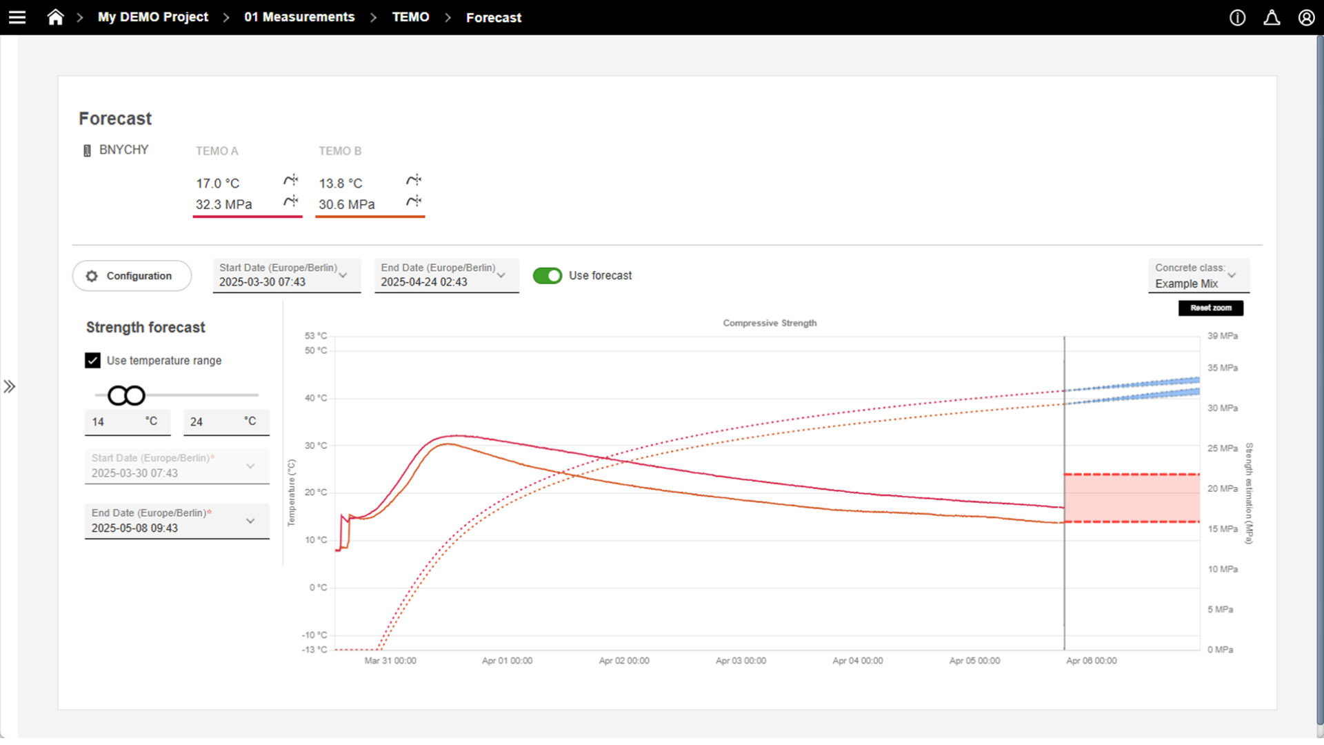 Laboratorijas dati saka, ka betons ir sasniedzis mērķa vērtības, bet pati konstrukcija joprojām var atpalikt vai tieši otrādāk, ātrāk uzrādīt nepieciešamo stiprību. Tiešie mērījumi novērš šo nenoteiktību. Kalibrējot temperatūras vēsturi faktiskajam betona maisījumam, inženieri iegūst stiprības līkni, kas atspoguļo reālo elementu, nevis laboratorijas ideālu. Tas ļauj betonu elementu atveidņot, noslogot, nospriegot īstajā brīdī − dažreiz agrāk, dažreiz vēlāk, bet vienmēr ar pārliecību.