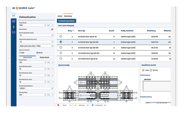 Schöck Scalix® programma paredzēta aprēķinu veikšanai dzelzsbetona konstrukcijām: balkonu konstruktīvo savienojumu projektēšanai, aukstuma tiltiņu pārrāvumu aprēķiniem, dažādas ģeometrijas un nestandarta balkonu konfigurāciju aprēķiniem.